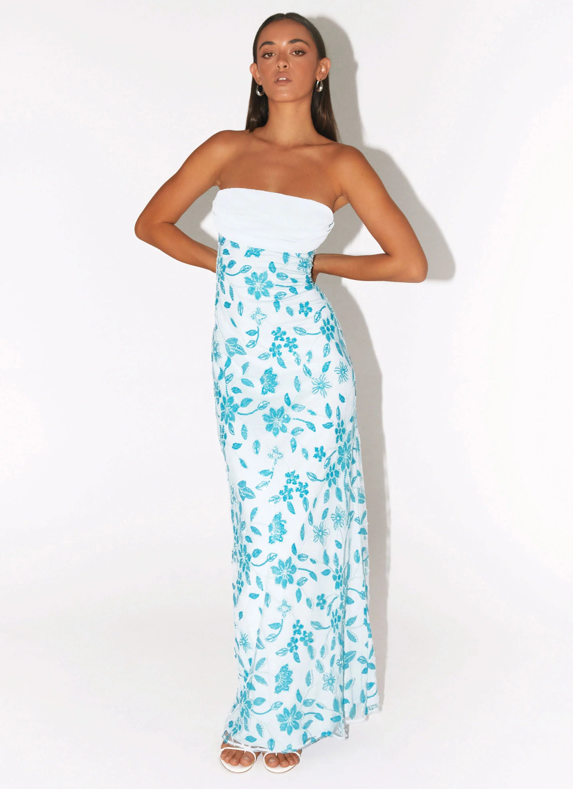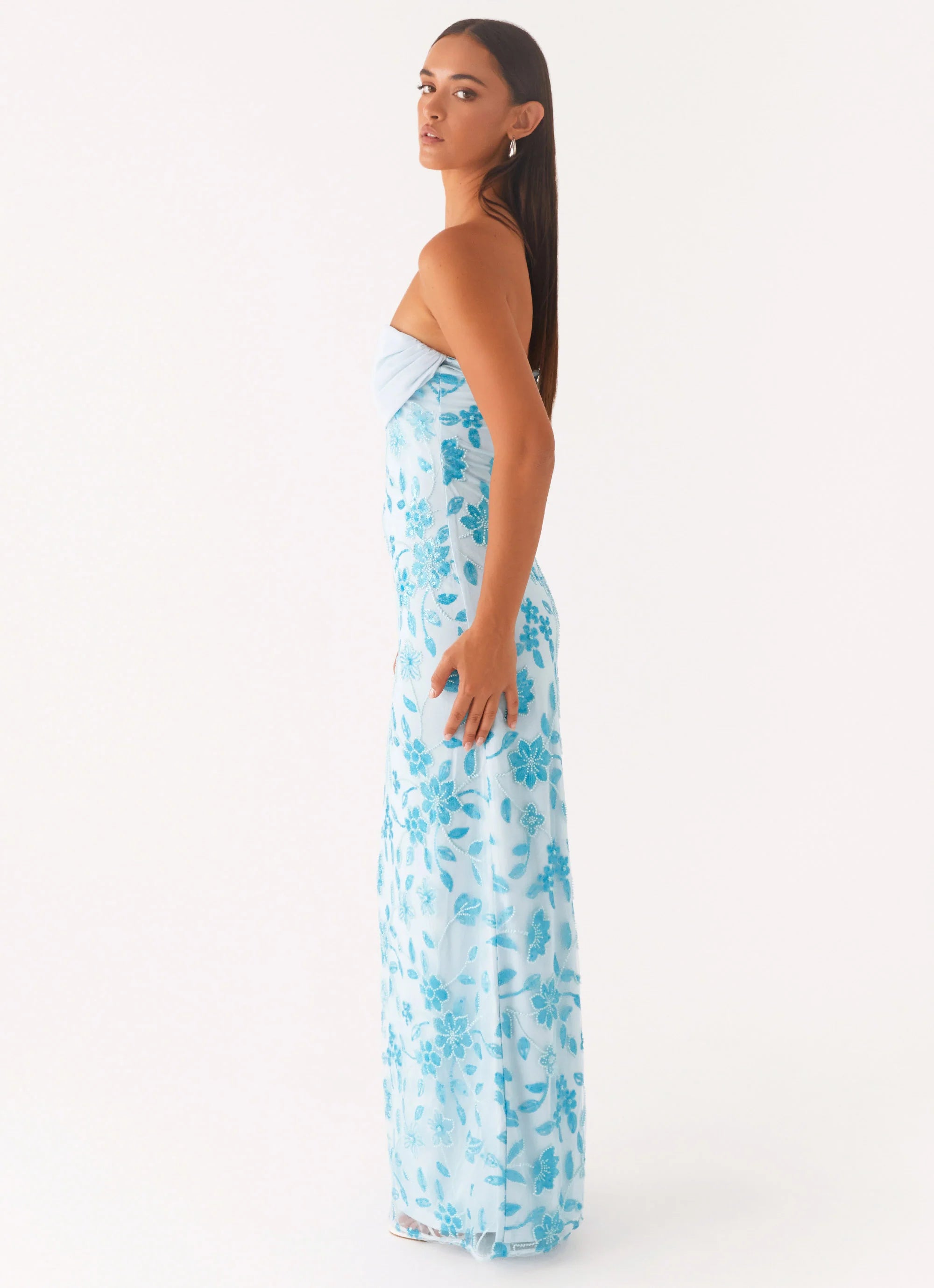 The Prism Beaded Maxi Dress is pure glamour. Featuring a strapless neckline, maxi length, and a front ruched bustier, it’s designed to captivate with every step, perfect for golden skies and unforgettable nights.