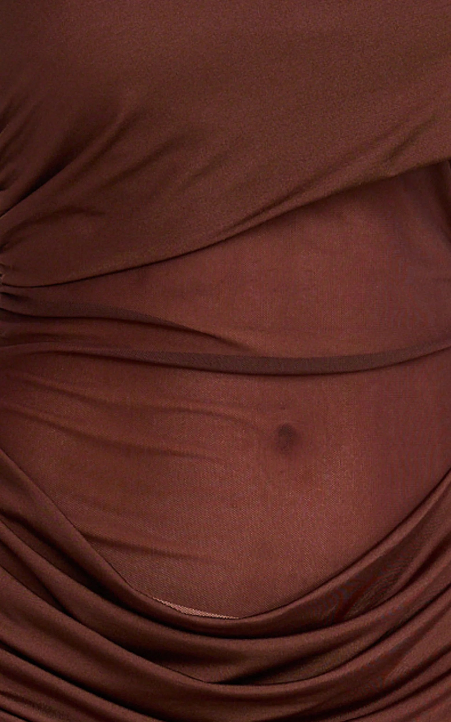 This rich brown maxi brings an effortlessly polished vibe with a gathered over-bust detail that shapes and supports, a sleek fitted bodice and a flowy hem that glides as you move. It’s elegant, feminine and ready for whatever’s on your calendar.