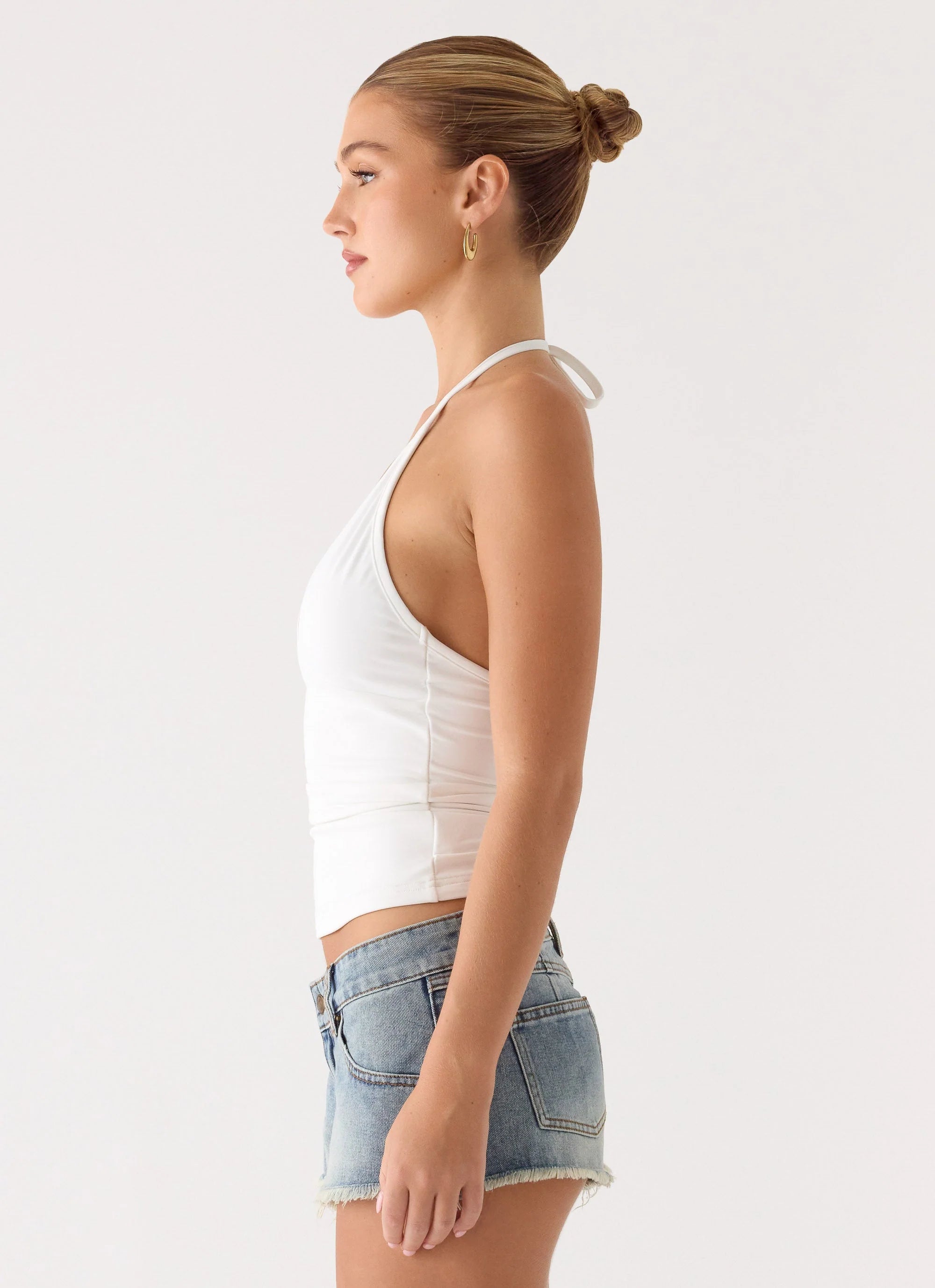 The Roll Out Halter Top is made for sun-soaked days that flow effortlessly into golden-hour nights. Featuring a flattering halter V-neckline and low back, this body-skimming top is crafted in premium jersey for a smooth, self-lined finish.