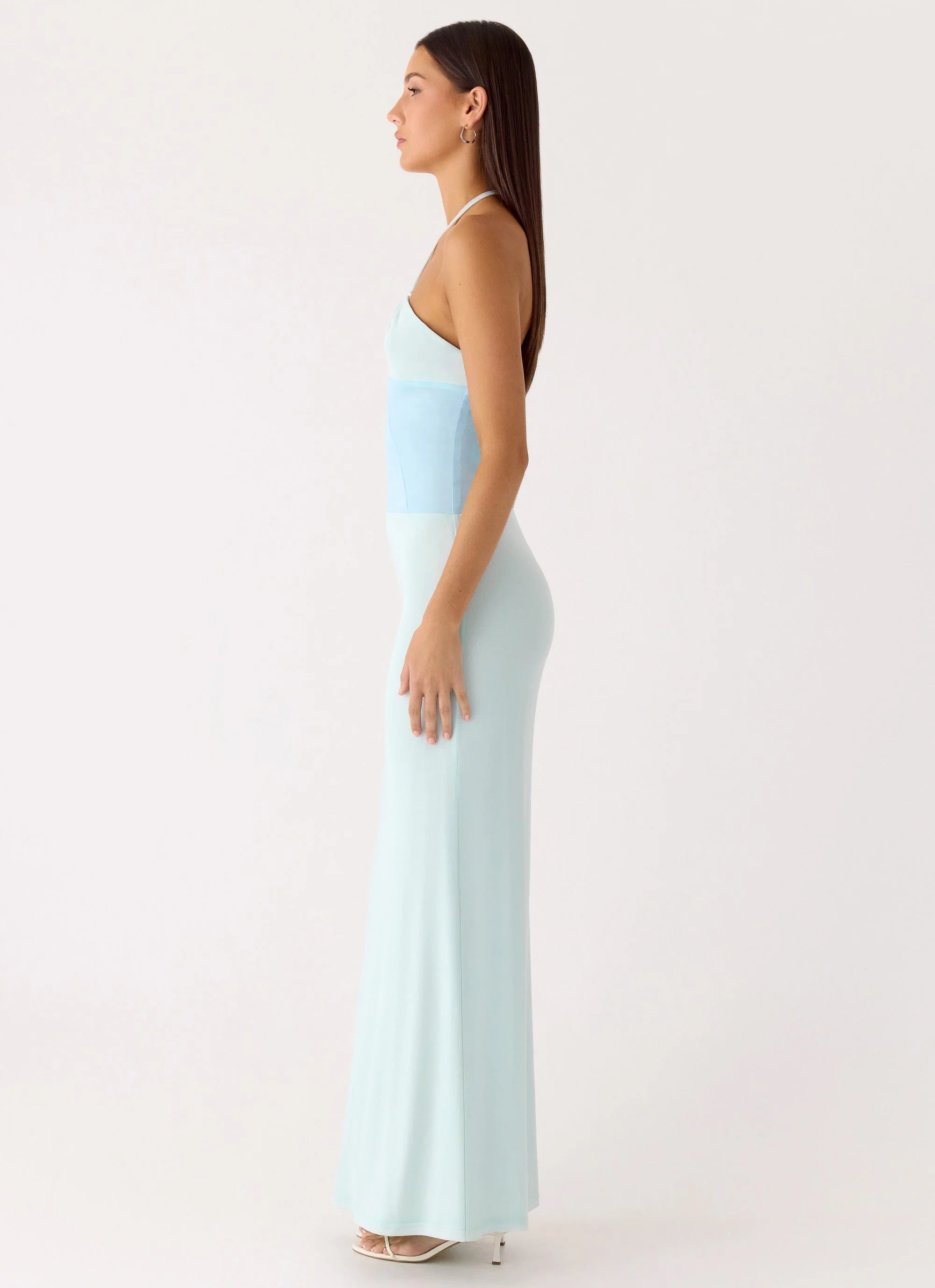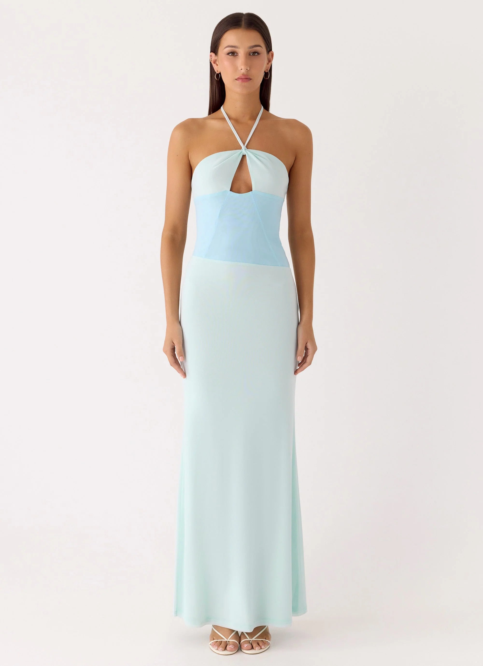 The Romilly Mesh Maxi Dress is a chic, elegant choice for special occasions. Featuring a halter neckline with a front keyhole, a sheer bodice, and thin adjustable straps, this maxi dress combines sophistication with a flattering silhouette. The low back adds a touch of allure, while the fully lined fabric ensures comfort and coverage.