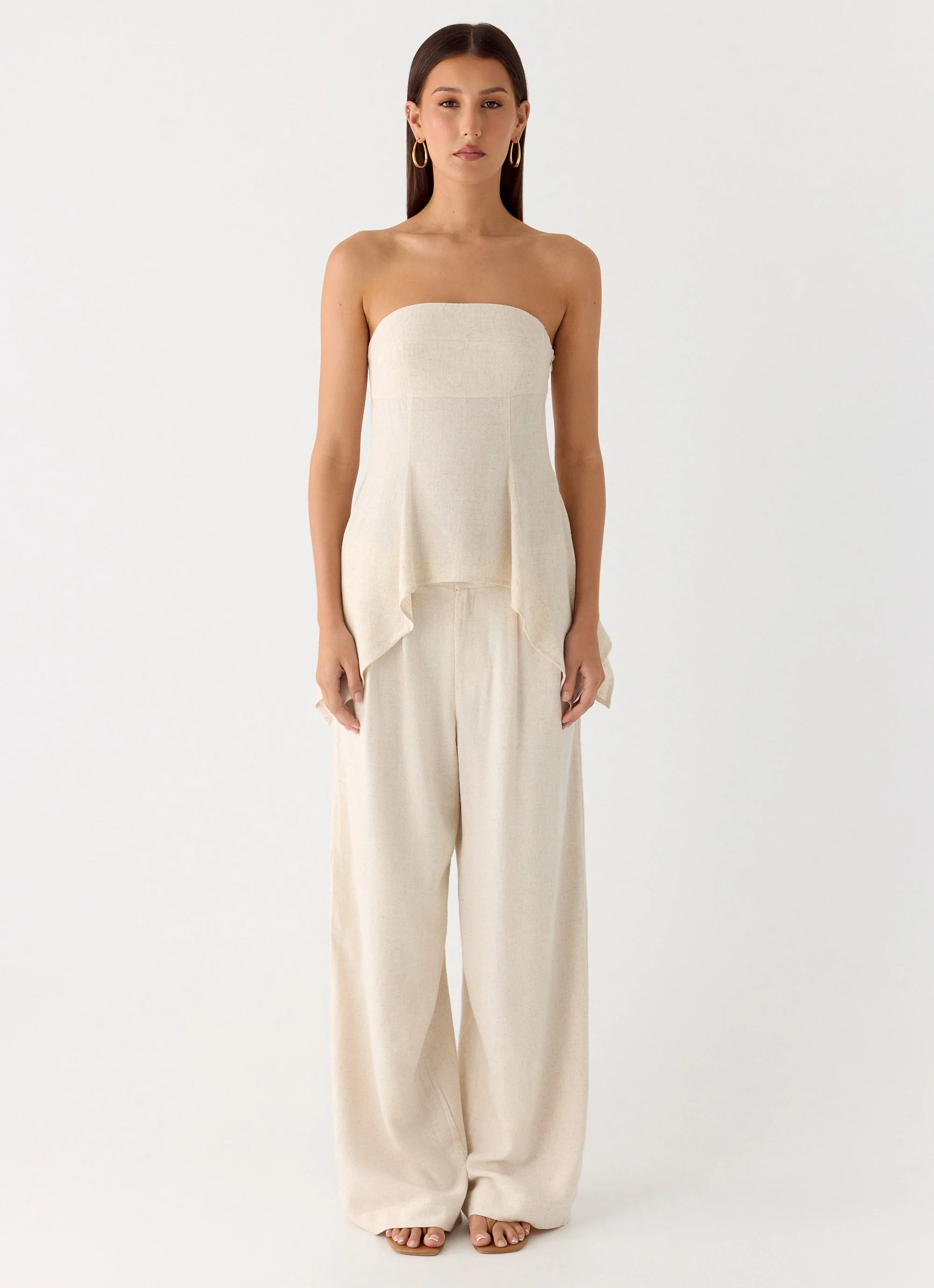 The Rossi Hanky Hem Top is a breezy, chic choice for summer days and sunset soirées. This strapless, body-fit top features a flared asymmetrical hemline and back stretch ruching for a flattering, feminine silhouette. Fully lined for comfort, it pairs effortlessly with skirts or high-waisted pants.
