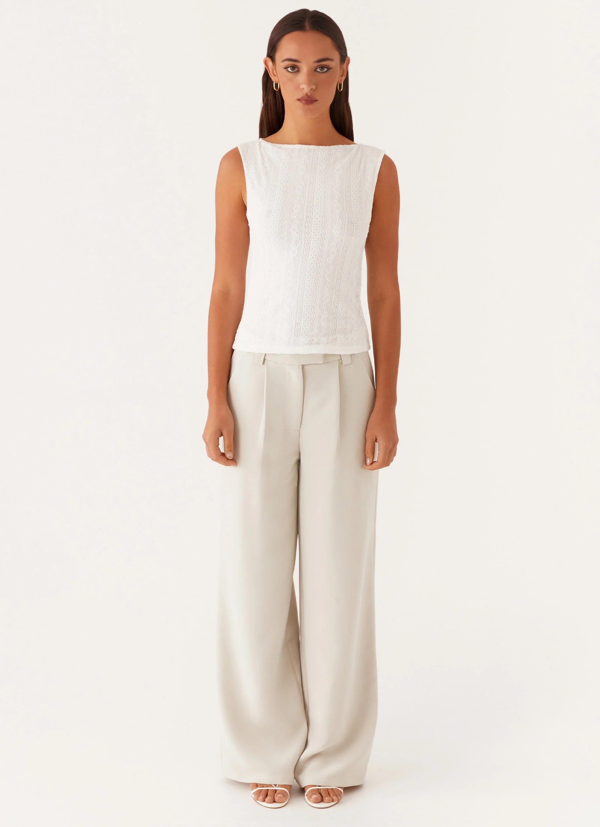 The Sandi Tank Top is a dream in stretch lace with a rounded neckline and semi-sheer finish. Perfect for layering or wearing solo, it brings a hint of allure to balmy nights out.