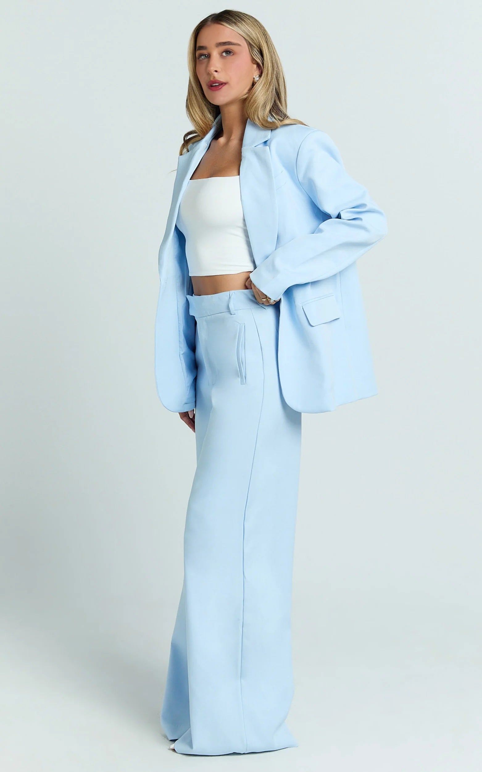 The waist-snatching rise and fluid wide leg deliver that Tailored polish with a fresh, Minimalist twist, while the Blue hue adds a soft pop that still feels wearable. Think leg-lengthening lines, easy movement, and instant outfit elevation.