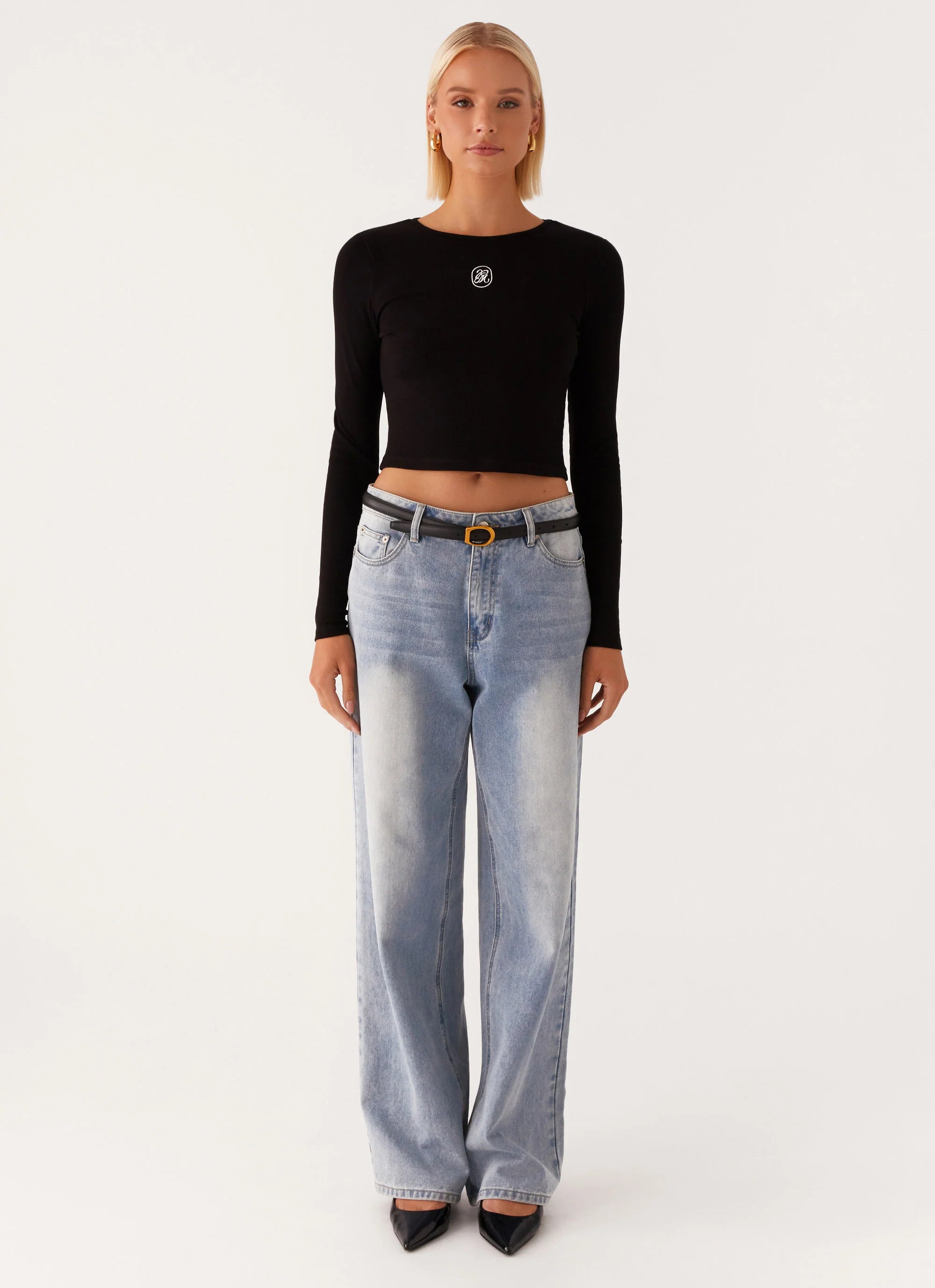 The Signature Monogram Long Sleeve Tee is a timeless piece featuring a classic rounded neckline and an eye-catching front embroidered monogram. Unlined for a lightweight feel, this tee is perfect for layering or wearing solo.