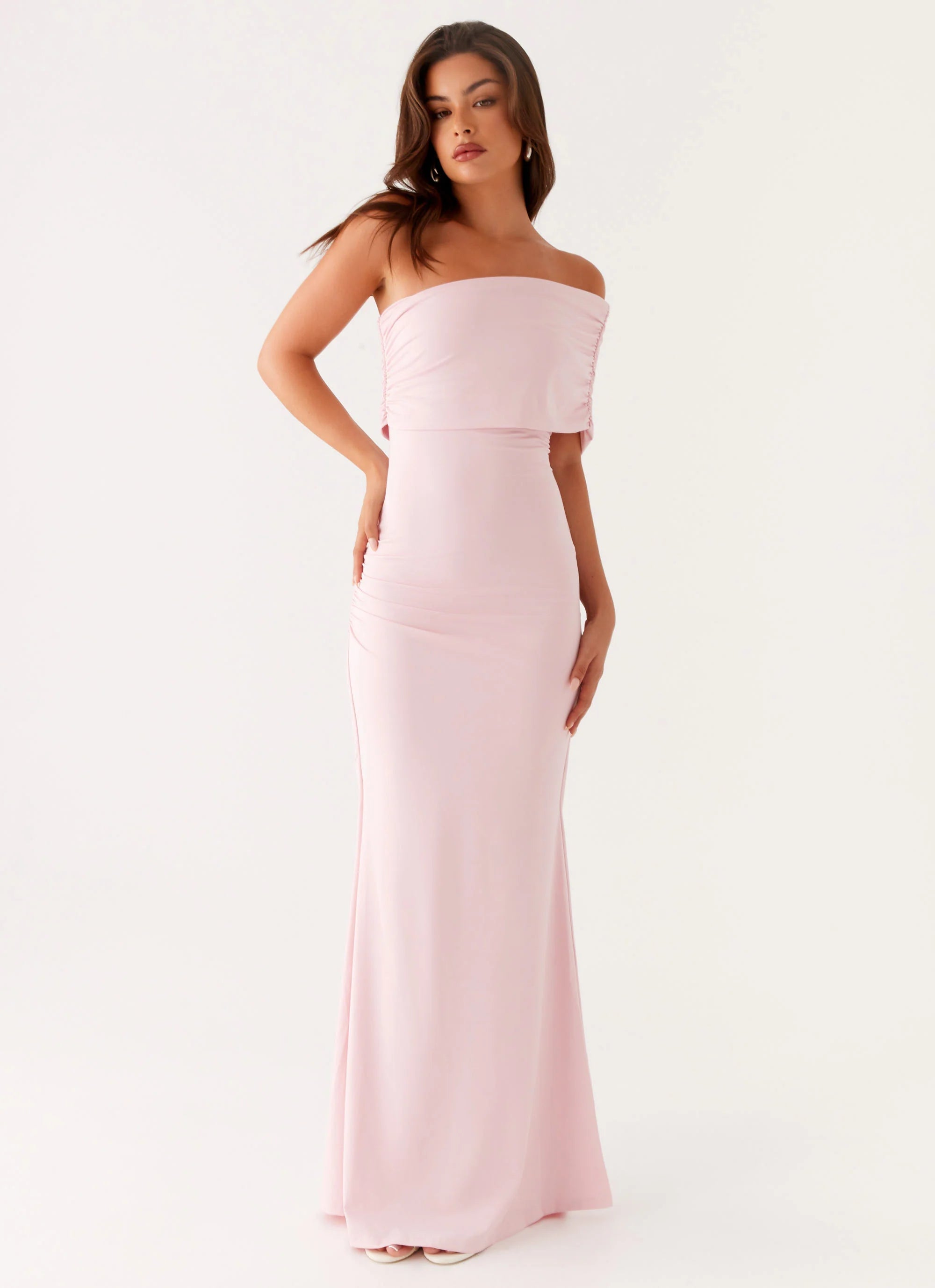 The Socialite Maxi Dress is a sophisticated and stylish choice for any occasion. Featuring a one-shoulder strap and elegant bust gathering, it creates a flattering silhouette that effortlessly enhances your figure.