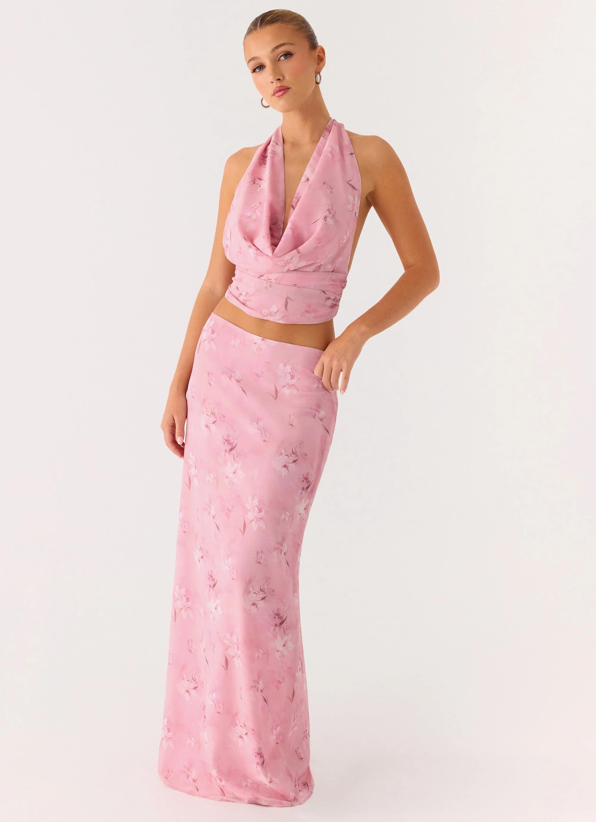 The Soren Halter Top is made for sunset silhouettes and after-dark adventures. Featuring a cowl neckline, mid-length cut, and full lining for a look that moves with the night.