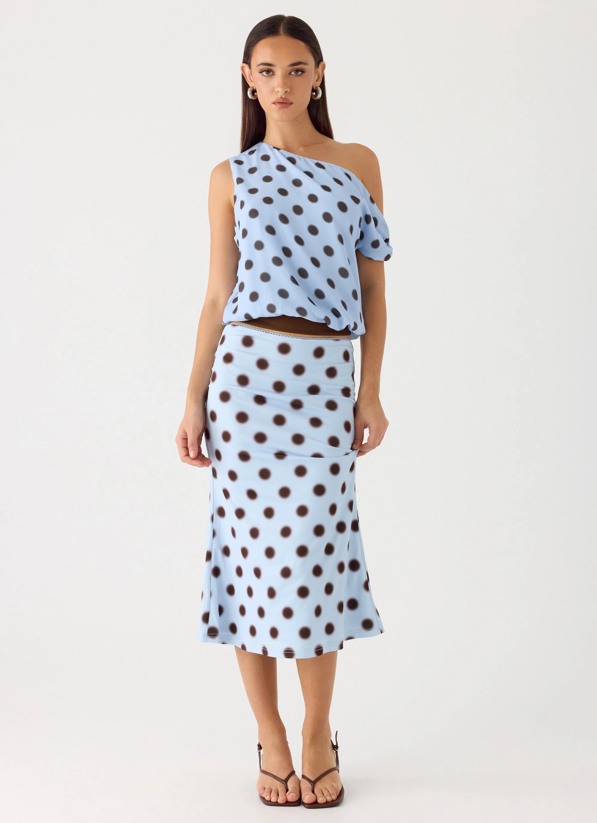 The Stick Around Top is made for evenings that move effortlessly from golden hour to nightfall. Featuring an asymmetrical off-shoulder design and blouson fit, this style combines a soft, flowing body with a stretch waistband for a flattering silhouette. Fully lined and cut in lightweight chiffon, it’s an editorial-ready piece for confident, playful nights.