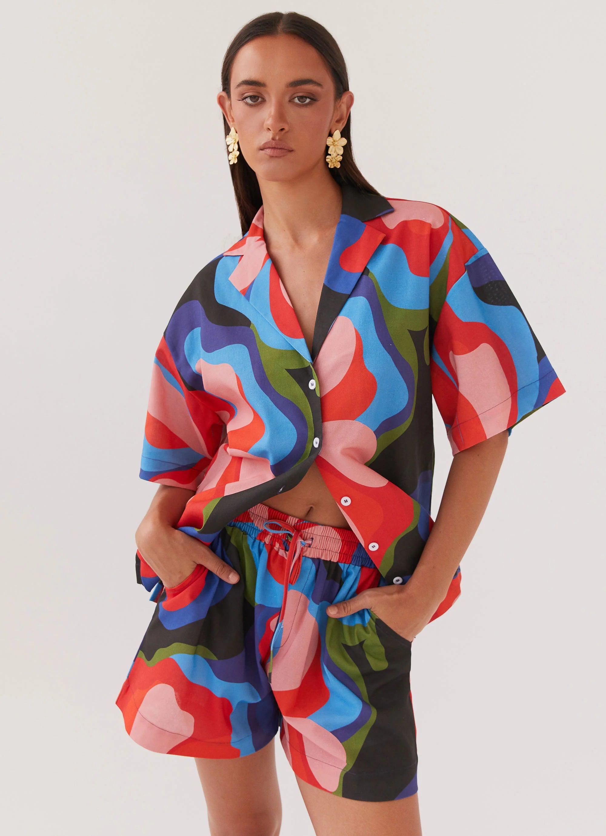 Introducing our best-selling Sweet Relief Oversized Linen Shirt, now in an exclusive "Floral Fantasy" print. Crafted in breezy linen, its oversized fit offers laid-back comfort, perfect for embracing the magic of golden skies and balmy nights. Pair it effortlessly with our Sweet Relief Linen Shorts for a chic and relaxed ensemble.