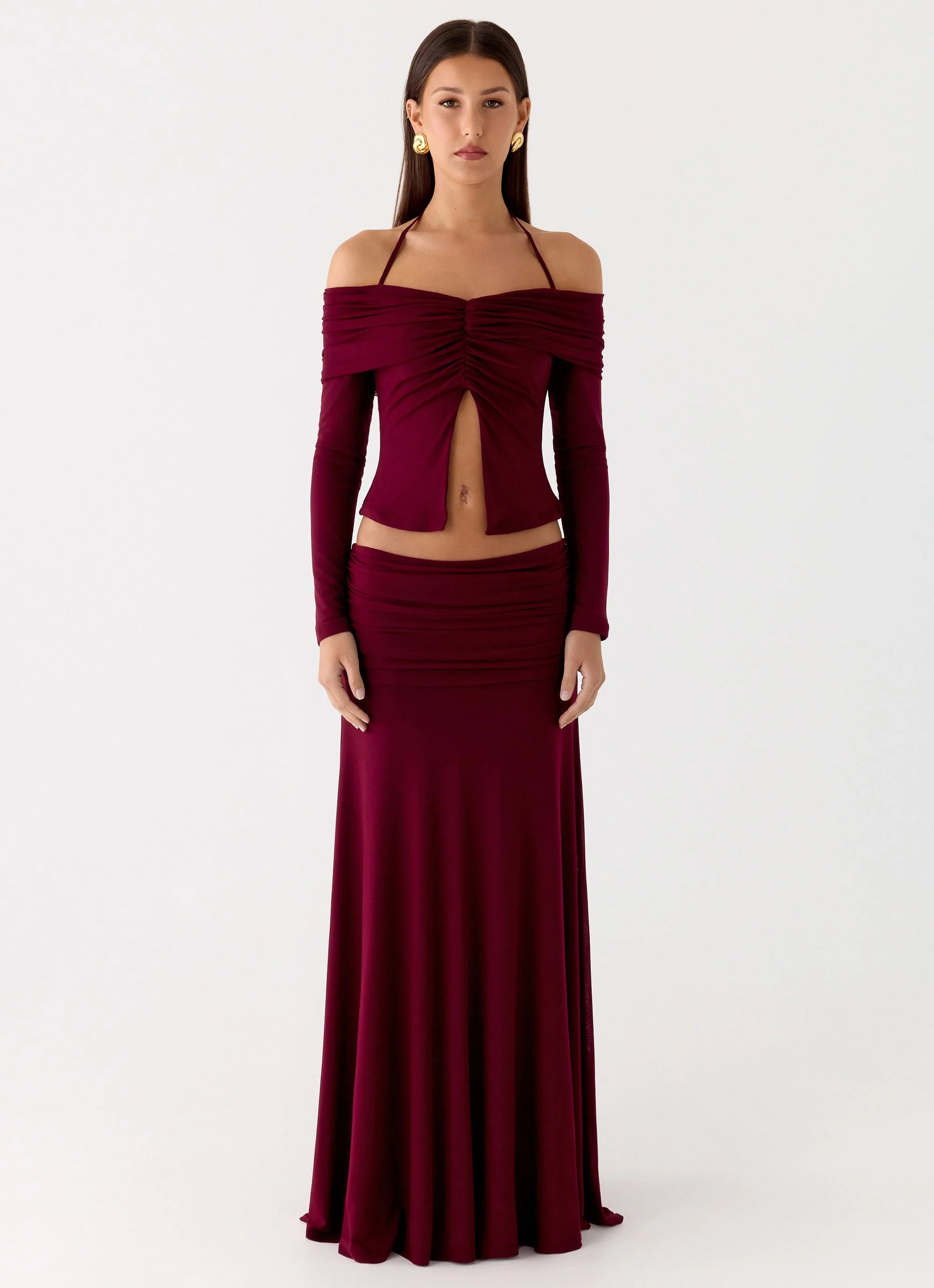 The Thorness Long Sleeve Top is made for nights that linger in golden hour light. Featuring an off-the-shoulder cut with a front split and twist detailing, this halter-neck top pairs a mesh finish with a figure-flattering silhouette, perfect for beachside cocktails or sunset city strolls.