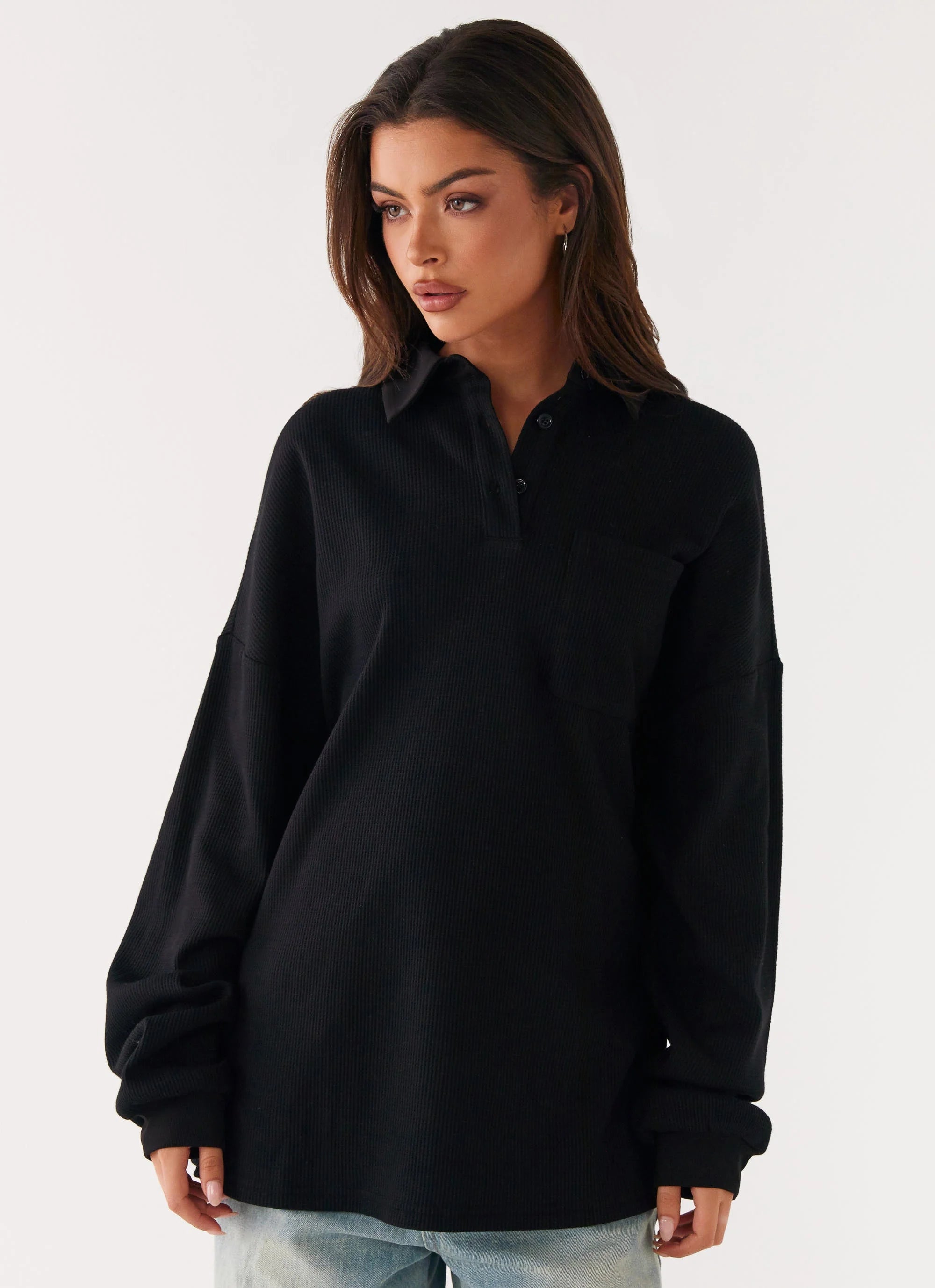 The Torrie Oversized Polo Top is all about relaxed yet chic style. With a V-collared neckline, oversized fit, and a loose, flowing design, it’s perfect for those laid-back golden hour moments. Effortlessly cool, this top pairs with everything from jeans to skirts, taking you from day to night with ease.