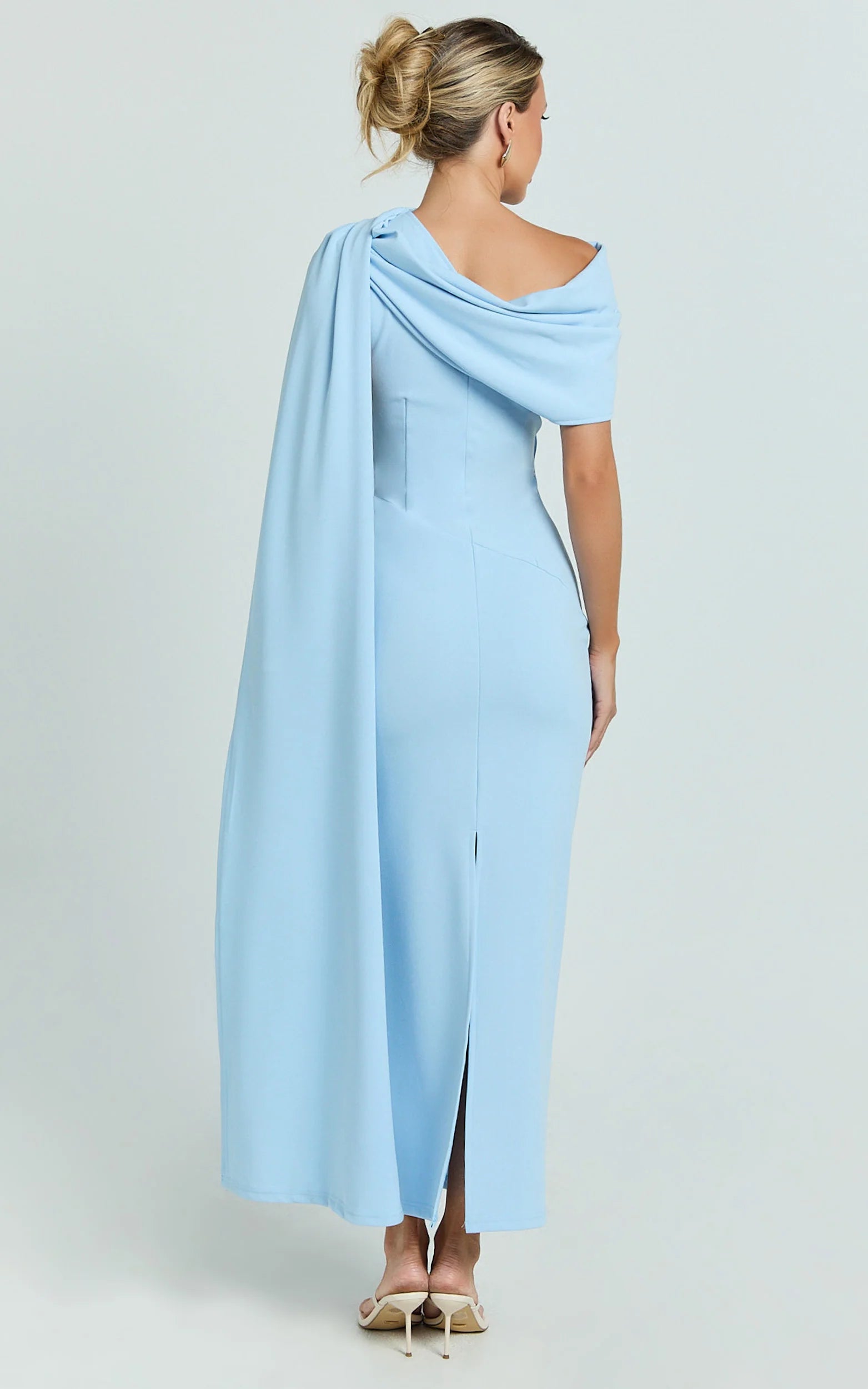 The vibrant blue hue nails occasion dressing while the one-shoulder detail adds instant polish. A fitted bodice meets a streamlined skirt for a silhouette that moves with you, effortless from aisle seats to after-hours.