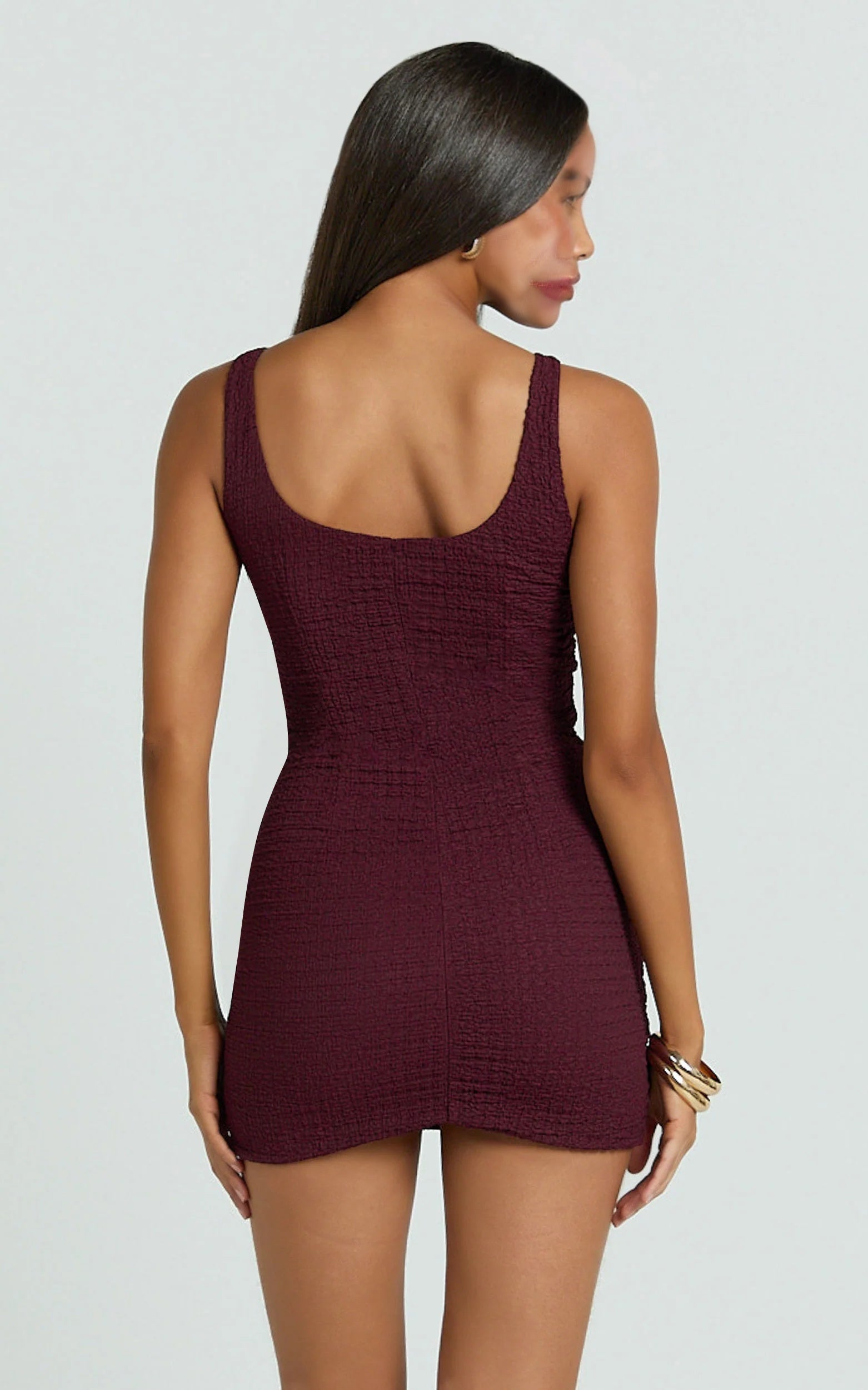 Wyatt Mini Dress knows how to play with the trends without trying too hard, pair the clean lines with the energy of naked dressing by keeping accessories minimal, or contrast the sultry finish with an oversized shirt draped off-shoulder for an effortless edge. From first sip to last dance, this wine-toned knockout keeps you polished, party-ready, and unforgettable.